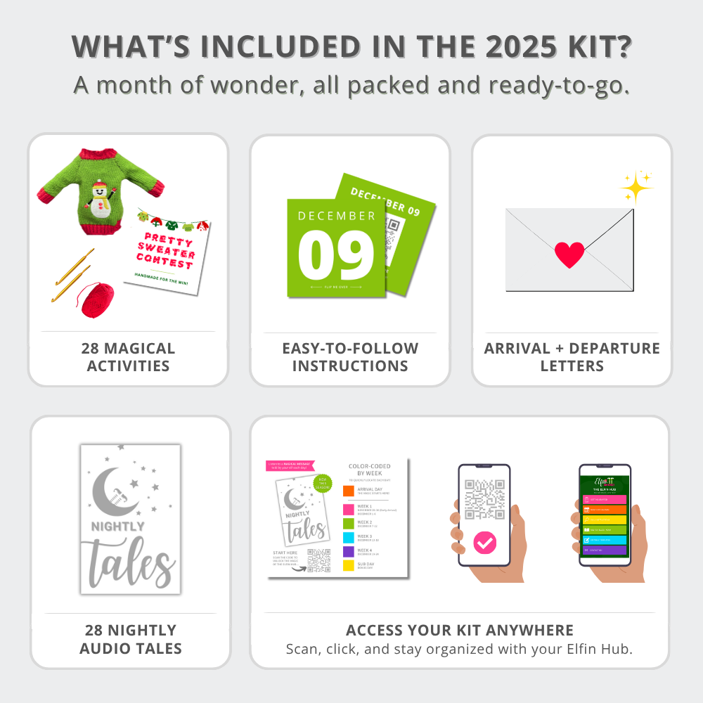 Join 30,000 + families who’ve made Elf season easy, stress-free, and magical with Elfin Around Kits.